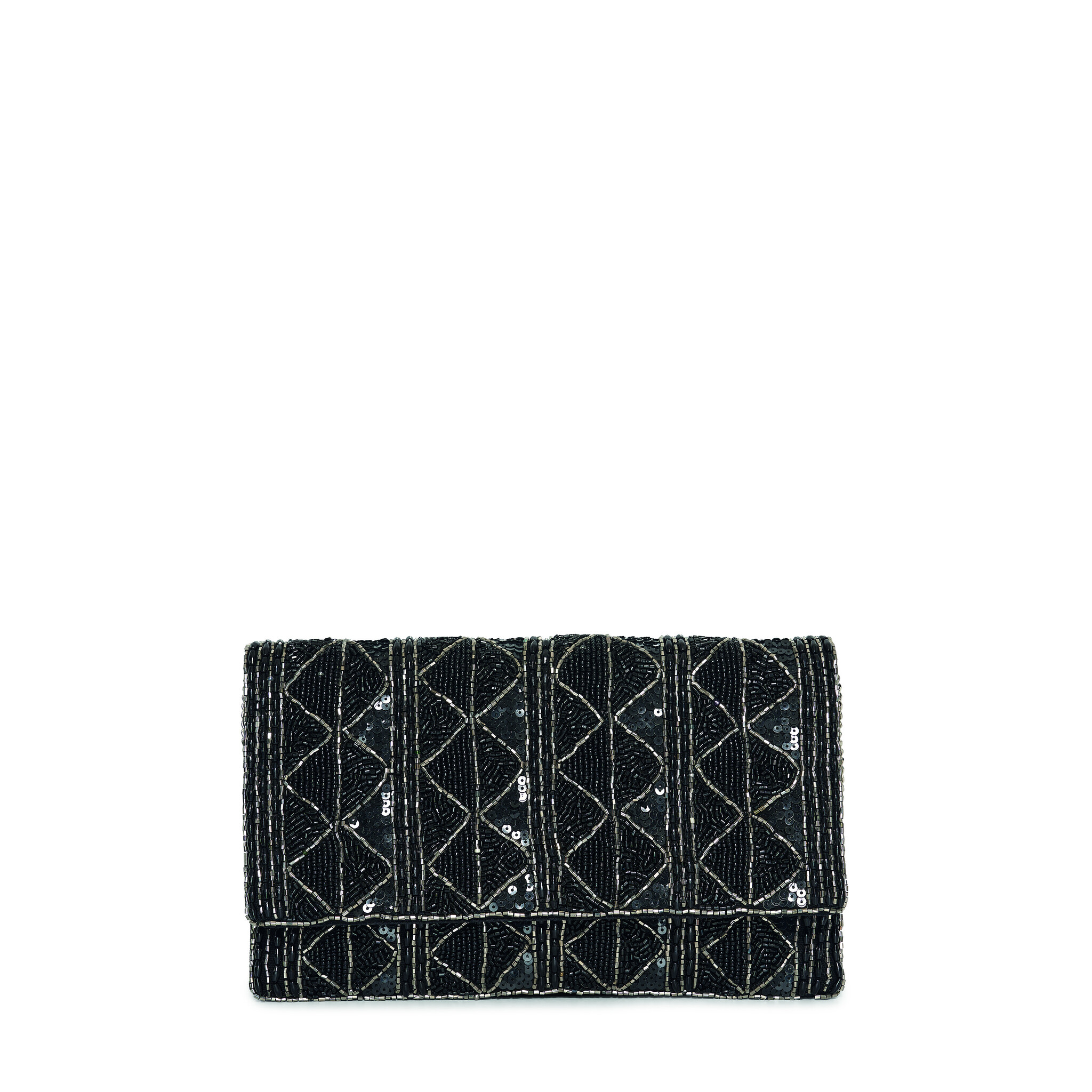 This bubbly black Aztek clutch, is an absolute bag must-have to go out with. With this clutch bag, you will receive an adjustable shoulder strap. This way you do not only have to hold this bag in your hand, but you can also wear it over the shoulder. On the interior, this bag has one main compartment with one slip pocket. The bag closes with a flap and a push button. The colour of the hardware is silver. The sizes (widht x height x depth) of this bag are 26x17x2