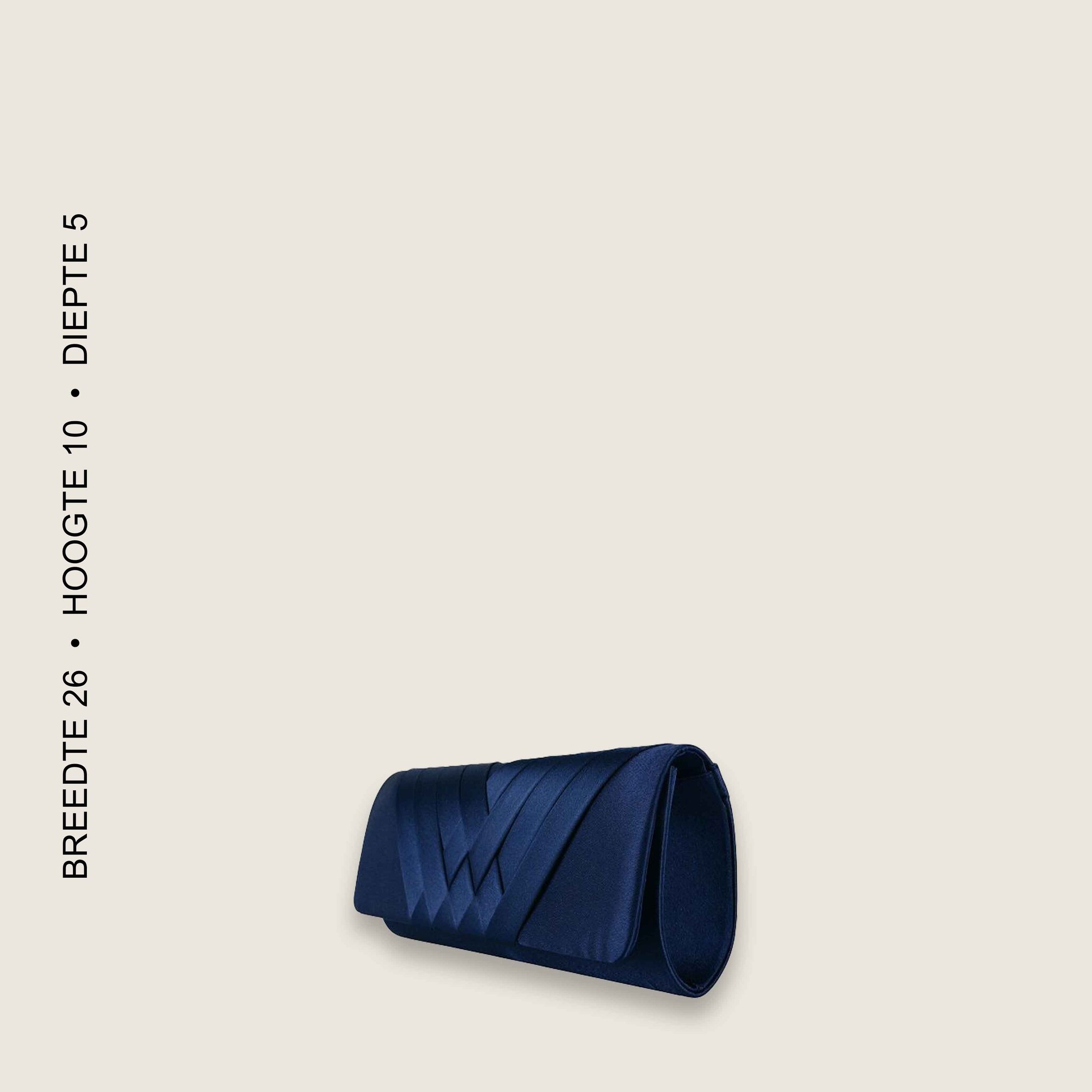 With this dark blue coloured satin clutch with braided detail, you can easily create a high-end look. This elegant clutch can easily be carried under the arm or hand due to its round shape. The clutch is lockable with a magnet closure and can also be worn over the shoulder. This clutch cannot be missed in your party wardrobe. The sizes (length - height - depth) of this bag are: 26 x 10 x 5 cm.