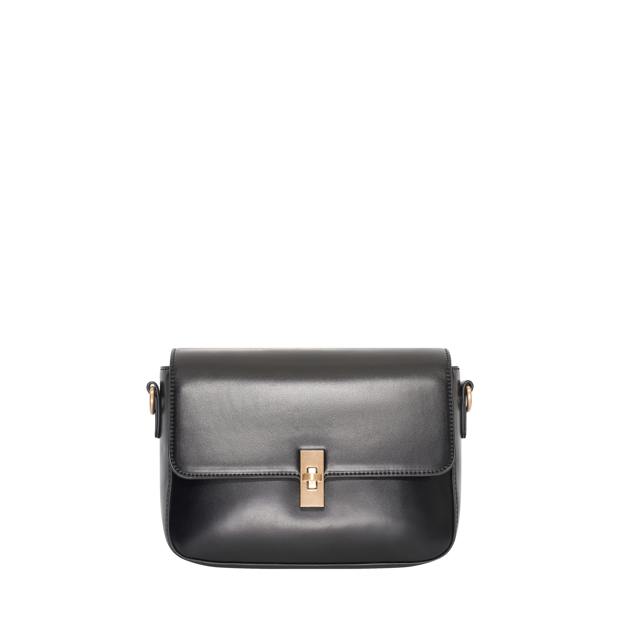This elegant black Loren crossover medium, is a timeless bag that can be used for many different occasions. This cross body bag has an adjustable shoulder strap, so that you can wear this bag at a perfect height. The bag has a spacious main compartment and two relatively small inner pockets, of which one with a zipper. On the front of this bag, a turn lock can be found. The colour of the hardware is gold. The sizes (widht x height x depth) of this bag are 23x7x17
