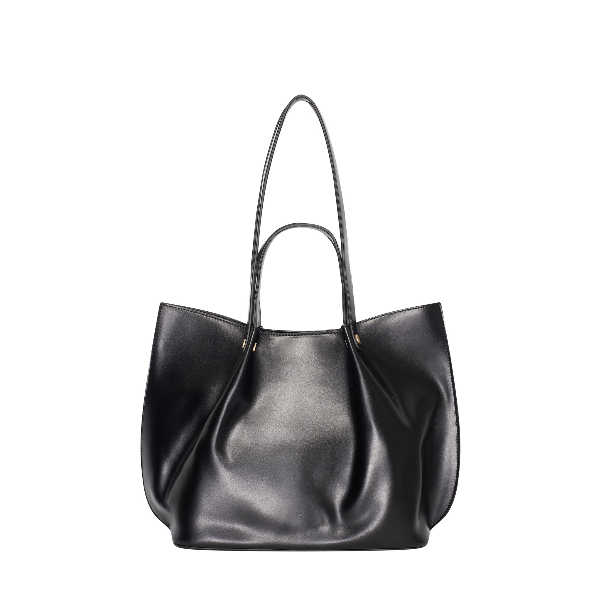 This elegant black Loren shopper rounded, is a multifunctional bag which is perfect for daily use, or an evening out. This bag has double (non adjustable) straps which can be worn comfortably in the hand or over the shoulder. On the inside of the bag is 1 main cpomartment with a inside pouch with zip. This bag closes with magnetic clasp closure. The colour of the hardware is gold. The sizes (widht x height x depth) of this bag are 37x25x14