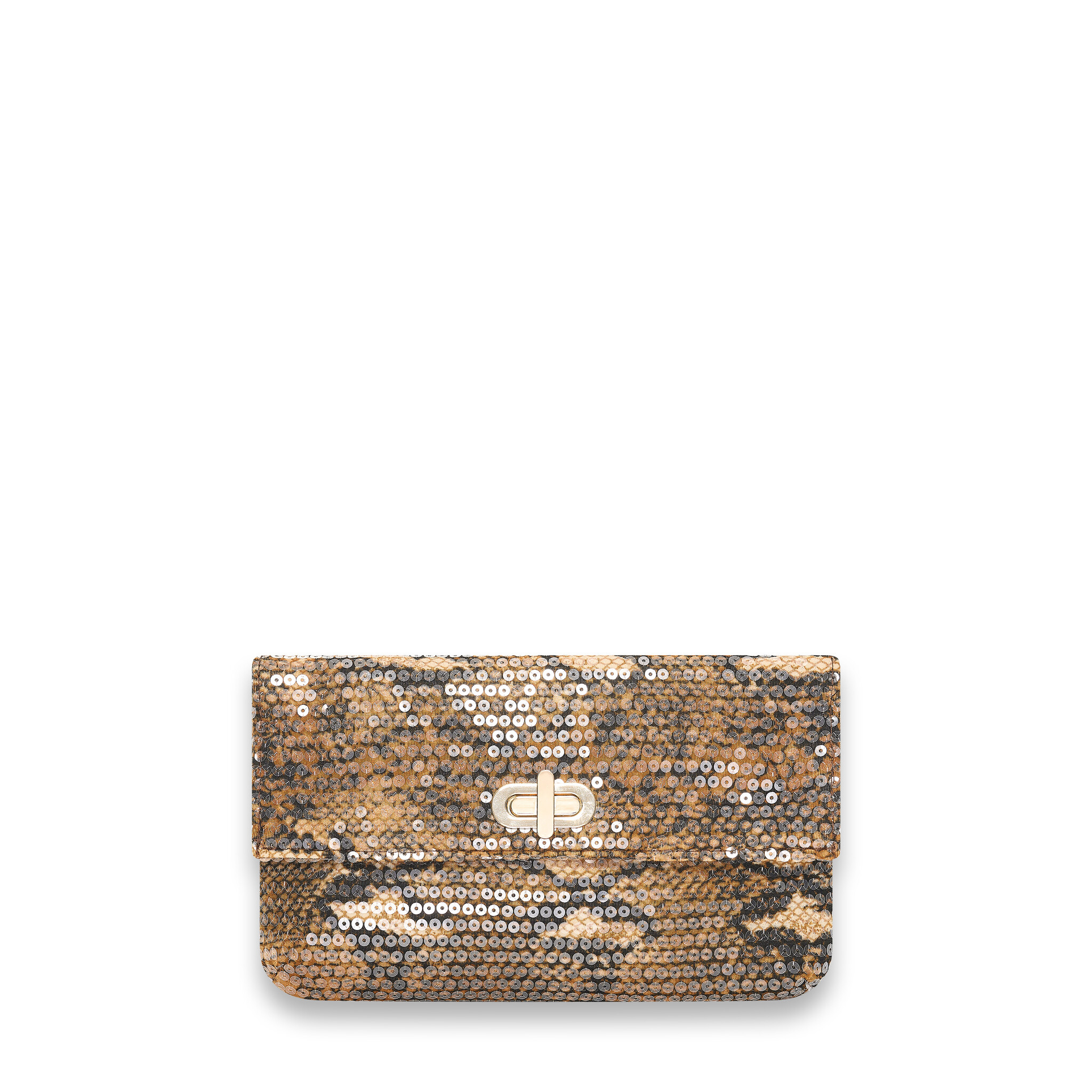 This joyful cognac Reptile clutch, is a large cluch bag in which many essentials can fit during your night out. With this clutch bag, you will receive an adjustable shoulder strap. This way you do not only have to hold this bag in your hand, but you can also wear it over the shoulder. On the interior, this bag has one main compartment with one slip pocket. Through a flap and closure at the front, this bag can be securely locked. The colour of the hardware is gold. The sizes (widht x height x depth) of this bag are 25x16x3