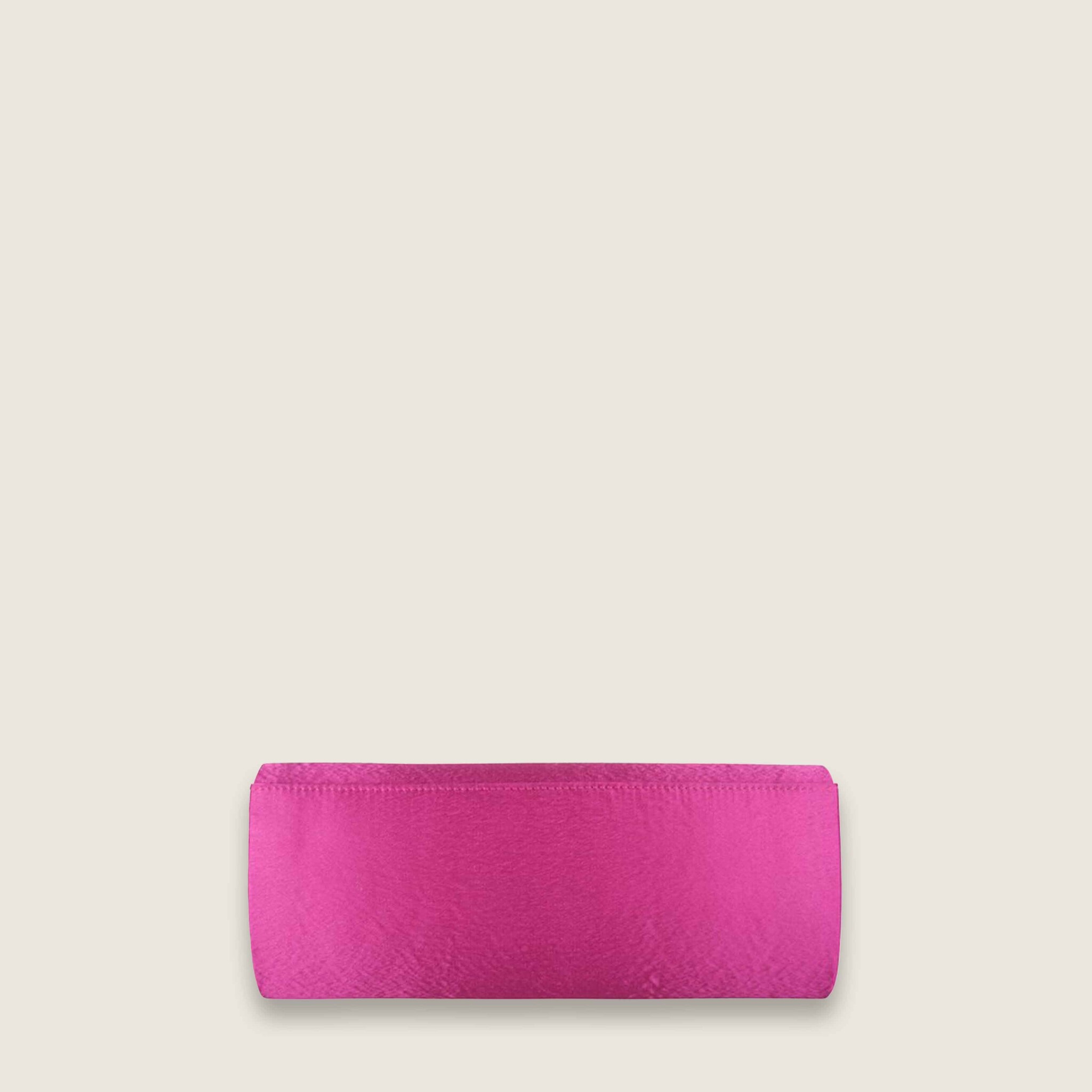De stijlvolle fuchsia gekleurde clutch Pam met strikje is gemaakt van een zachte satijnen stof. De tas heeft een ruim compartiment met klein binnenvakje en sluit met een drukknoop aan de voorzijde. De clutch kan door middel van een extra afneembare lange schakelketting op diverse manieren gedragen worden. De 'drop length' van dit tasje is 65 cm. Dat wil zeggen dat vanaf de schouder gemeten het tasje ongeveer '65 cm' lager hangt. Deze clutch is een ideale clutch voor een avondje uit, een bruiloft of gala en is complementair aan je outfit. De afmetingen (breedte x hoogte x diepte) van dit tasje zijn 26 x 10 x 5 cm.