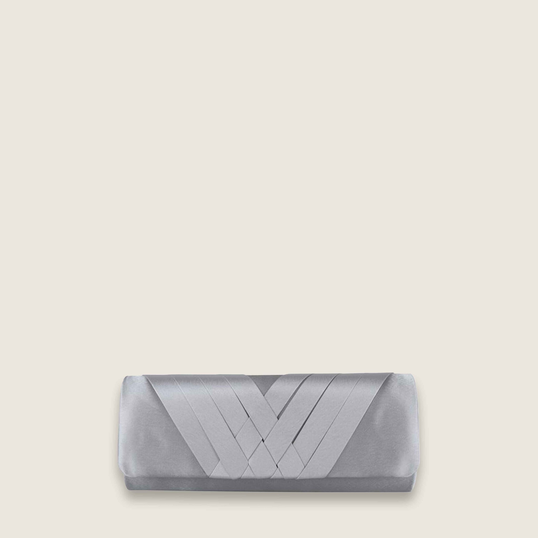 Met deze zilveren satijnen clutch met gevlochten detail creëer je heel makkelijk een high end look. Dit sierlijke exemplaar is door zijn ronde vorm gemakkelijk onder de arm of in de hand te dragen. De clutch is afsluitbaar met een magneten drukknoop en is behalve als clutch ook aan de schouder te dragen. Kortom met dit item steel je absoluut de show en is dus onmisbaar bij jouw feestoutfit! De afmetingen (breedte x hoogte x diepte) van dit tasje zijn 26 x 10 x 5 cm.