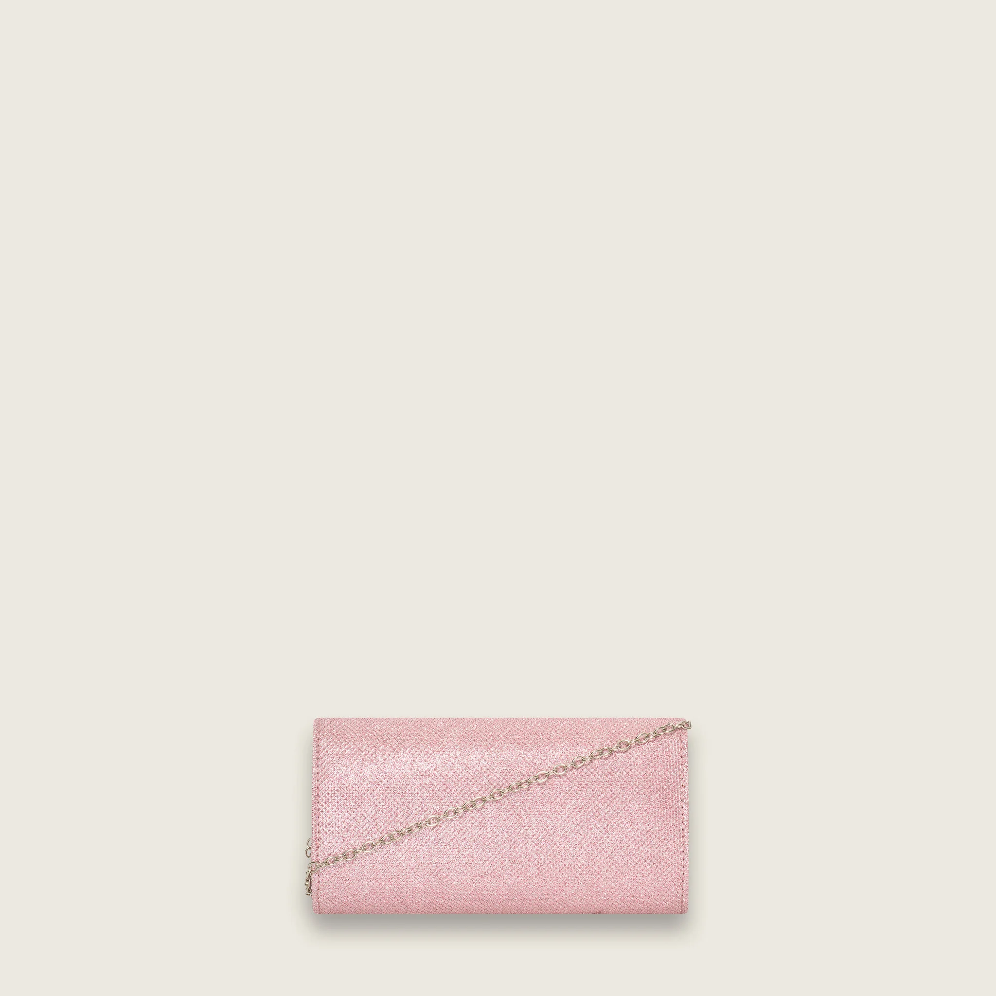 Deze tijdloze clutch is uitgevoerd in een mooi stoffen materiaal. De clutch wordt afgesloten door middel van een magneet drukknoop en kan op verschillende manieren op de schouder gedragen worden door een afneembare korte- en een lange schakelketting. Een perfecte clutch voor een avondje uit of chique diner! De afmetingen (breedte x hoogte x diepte) van dit tasje zijn 30 x 11 x 6 cm.