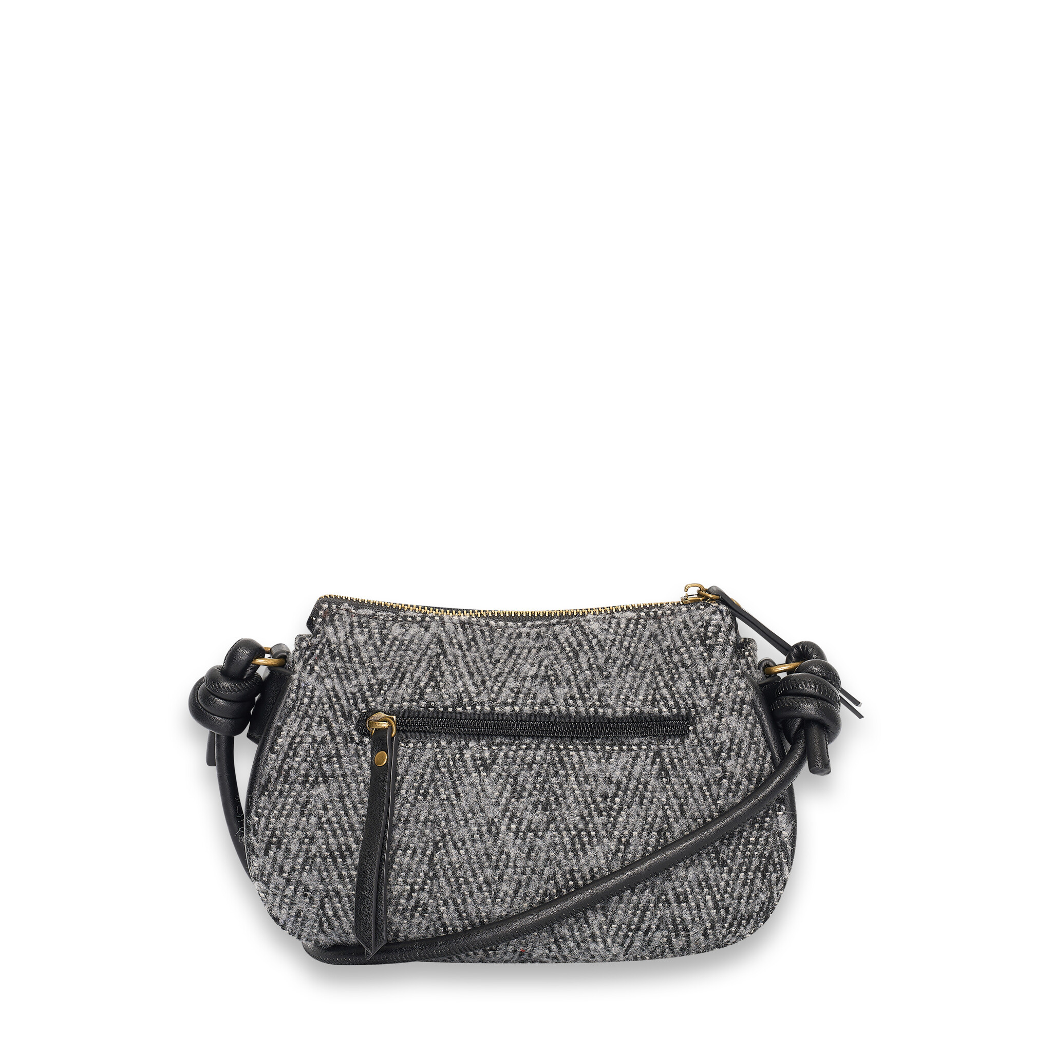 Deze moderne retro zwarte Herringbone crossover , is een stijlvolle tas met een te gekke print. De crossbody tas heeft een niet verstelbare schouderketting. Aan de binnenkant heeft dit tasje twee compartimenten. Aan de achterzijde van deze tas bevindt zich een ritsvak. De tas kan worden afgesloten middels een rits. De metaalkleur heet 'antique brush' en heeft een messing kleur, als gepoetst goud. De afmetingen (breedte / hoogte / diepte) van deze tas zijn 25x16,5x7