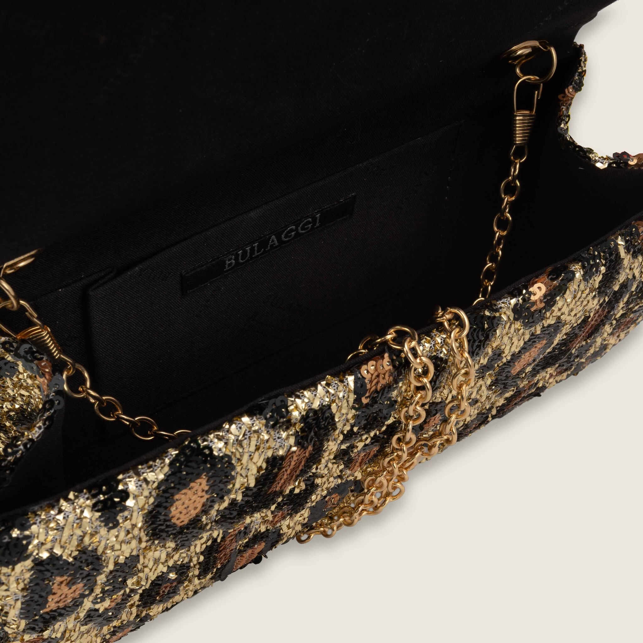 Deze bruisende gouden Leopard envelope is een absolute must-have voor een avondje uit. Deze clutch wordt geleverd met een verstelbare schouderriem, zodat je de tas niet alleen in de hand hoeft te dragen. Aan de binnenkant heeft deze tas een hoofdcompartiment met één binnenvakje. De tas wordt gesloten met een overslag en een magneetsluiting. De metaalkleur is goudkleurig. De afmetingen (breedte / hoogte / diepte) van deze tas zijn 20x11x5